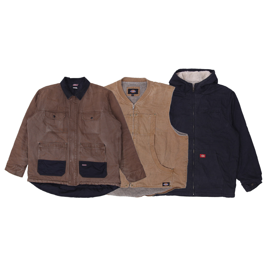 Built for tough wear, Dickies men’s cotton jackets feature durable cotton construction, warm lining, and classic workwear styling. These jackets may show minor stains or signs of previous use, reflecting their practical nature while remaining fully functional and suitable for everyday wear.