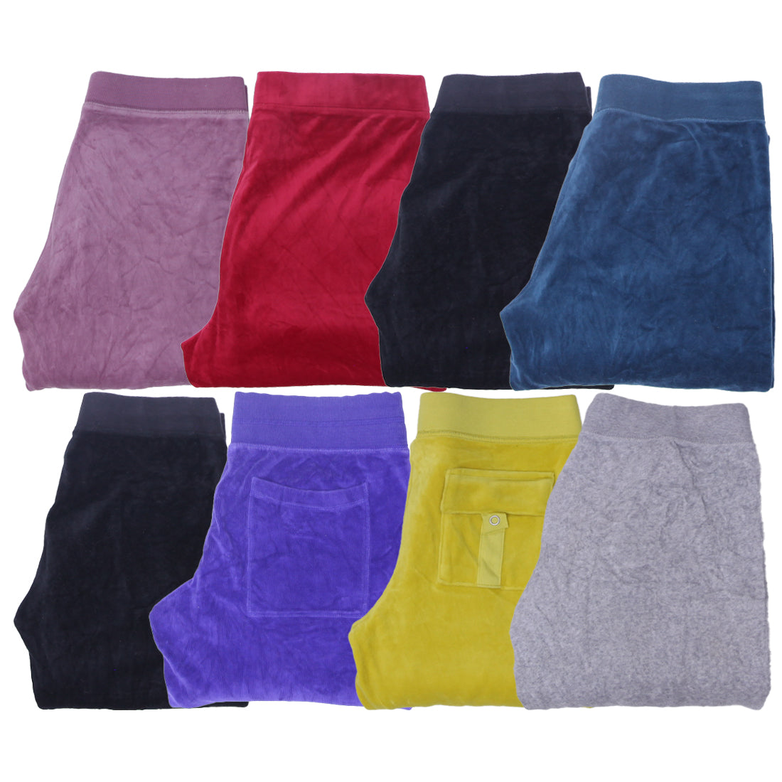 Popular in the Y2K and retro loungewear trend, these Juicy Couture velour sweatpants offer both comfort and standout style. Easy to pair with crop tops, hoodies, and matching velour jackets, they are a great choice for vintage resellers, thrift stores, and wholesale Y2K clothing collections.