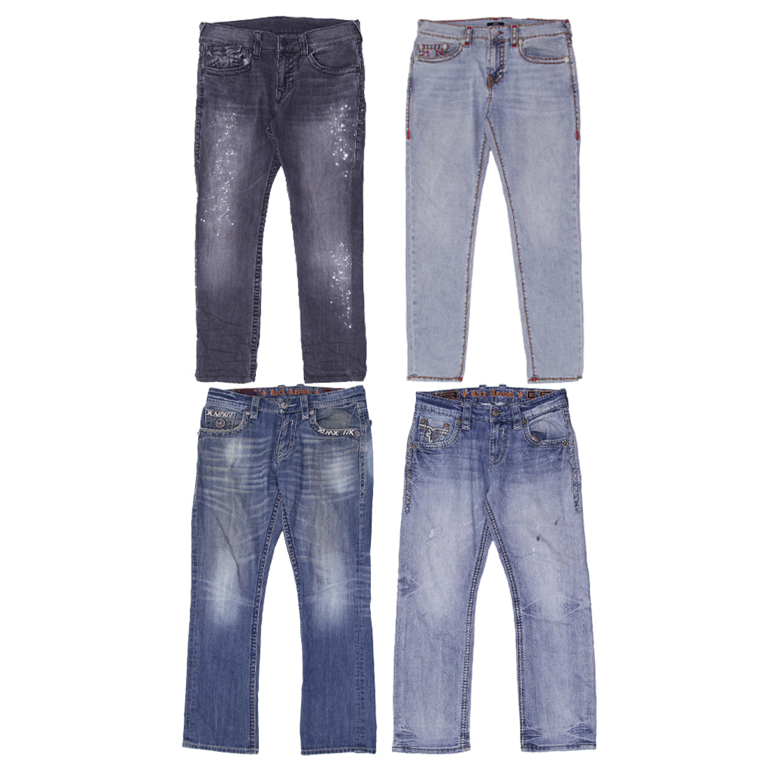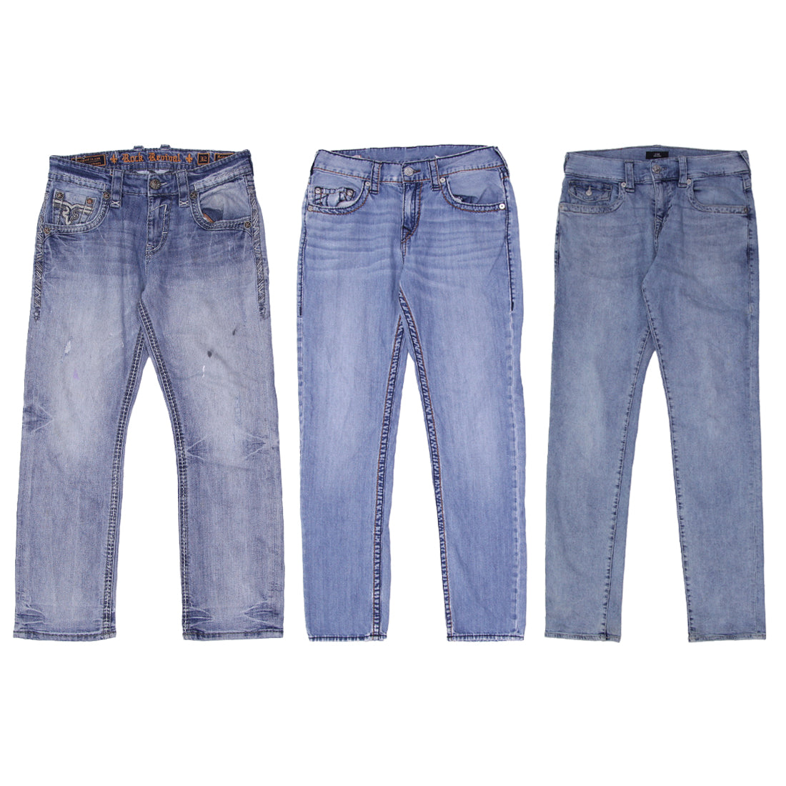 | Bundles include mixed brands. | Unless otherwise noted, our mixes typically include: Grade A: 70% Grade B: 30% Grade C: None | Our collection includes waist sizes ranging from 28 to 40. |